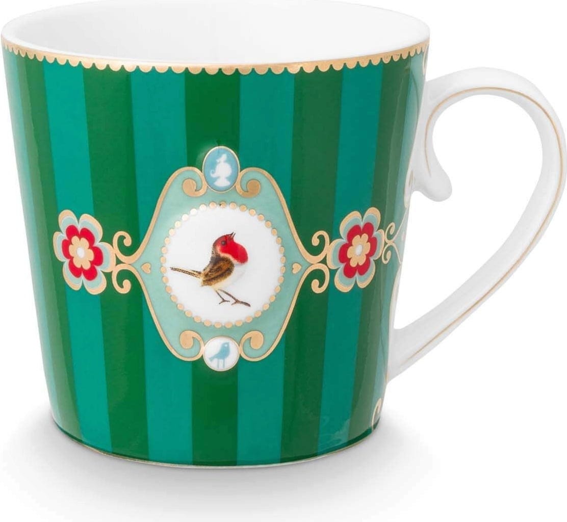 Pip Studio Bekerset Love Birds, Groen gestreept
