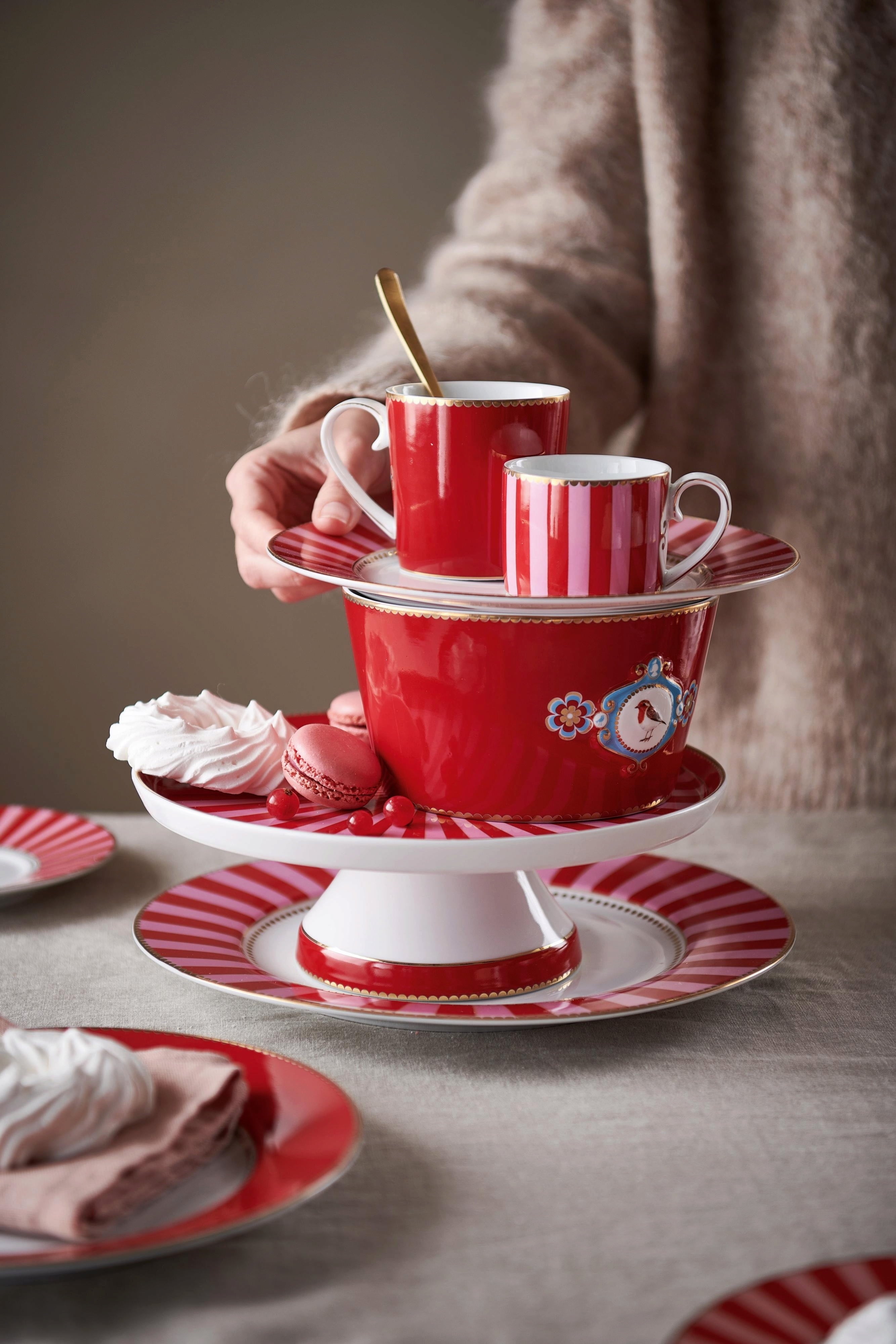 Pip Studio Taarstandaard - Love Birds Gestreept, 24 cm, Rood/roze