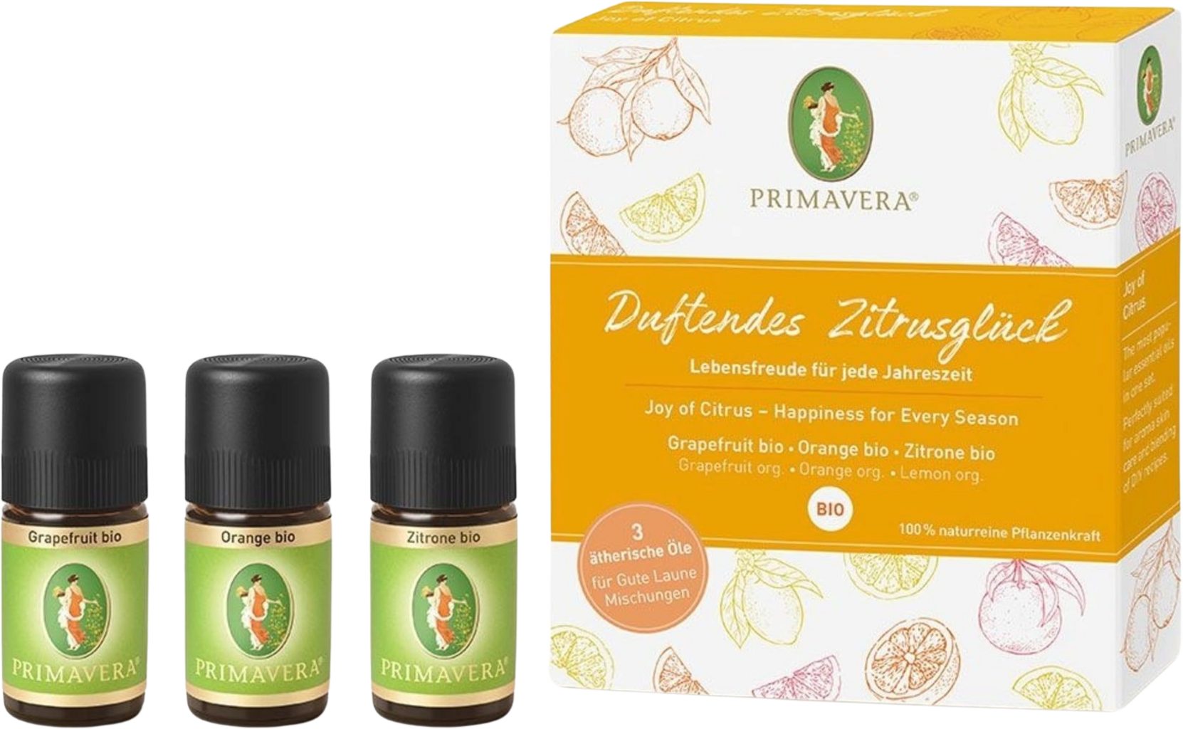 PRIMAVERA heeft drie van de meest populaire essentiële citrusoliën gecombineerd in één set - ideaal voor zelfgemaakte mixen.