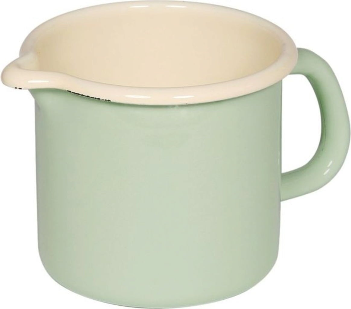 Een klassiek melkpannetje dat ook kan worden gebruikt om sauzen of andere vloeistoffen te verwarmen. Hij is gemaakt van pastelgroen email, is snij- en krasbestendig en kan gebruikt worden met elk type fornuis. Het smaakneutrale materiaal geleidt de warmte snel zodat er geen energie wordt verspild.