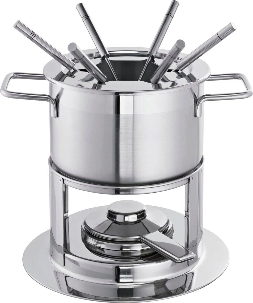 Kaas, bouillon of chocolade? Hoe je je fondue ook het liefst eet, met deze set kan het gezellige feestmaal op elk moment beginnen. De pan van hoogwaardig roestvrij staal kan op alle gangbare warmtebronnen worden verwarmd. Bovendien is de pan oven- en vaatwasserbestendig. De zes vorken zijn individueel gemarkeerd, zodat niemand zijn culinaire hoogstandjes uit het oog verliest.