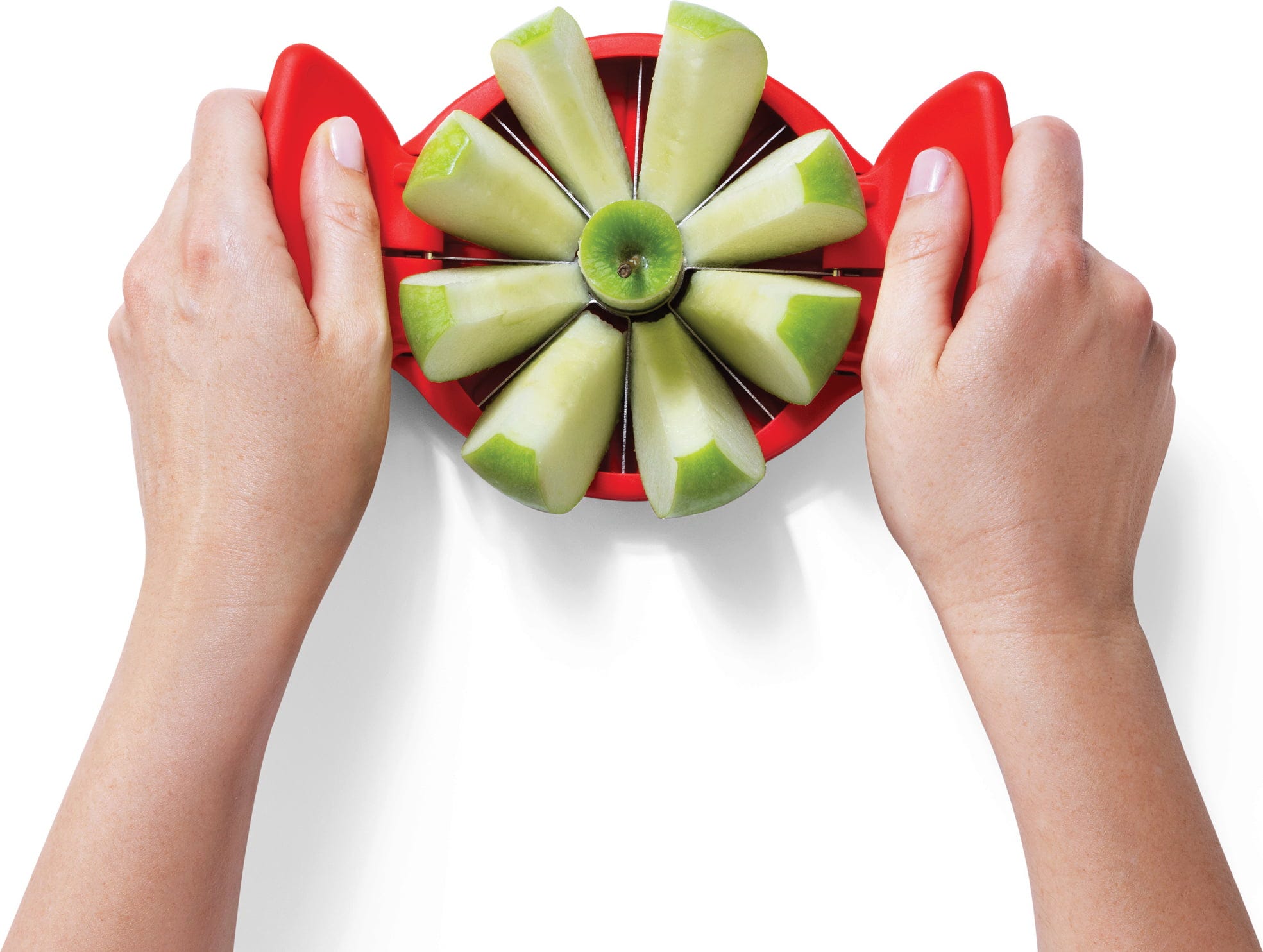 Met de Appelsnijder Flapple van Dreamfarm deel je appels van elke grootte in één handomdraai in acht gelijke partjes, terwijl het klokhuis netjes wordt verwijderd! Dankzij de praktische onderzetter komen de scherpe roestvrijstalen messen niet in contact met de ondergrond, dus je hebt niet eens een snijplank nodig.