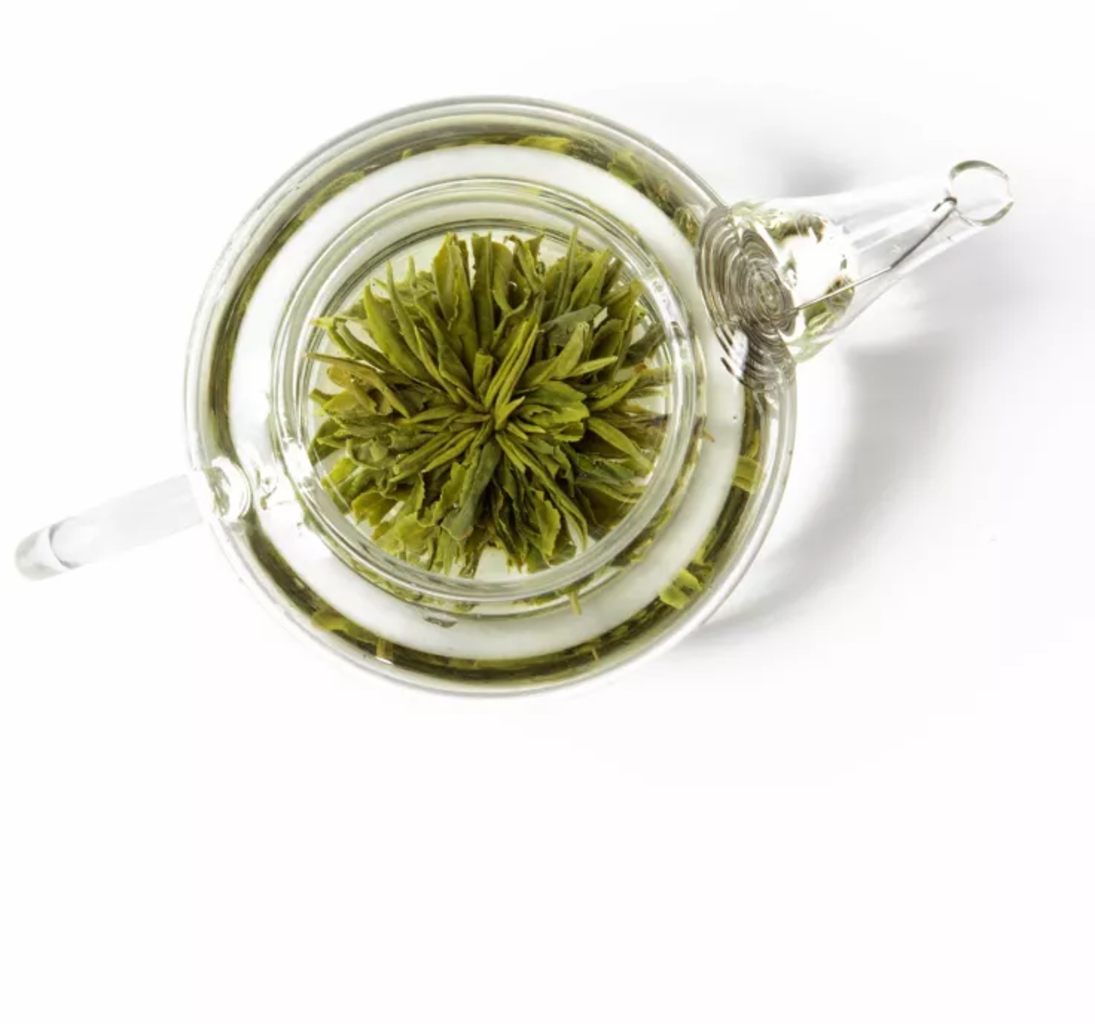 Terwijl de theerozen in elk kopje hun ware schoonheid laten zien, is de smaak van de populaire groene thee delicaat bloemig en elegant.