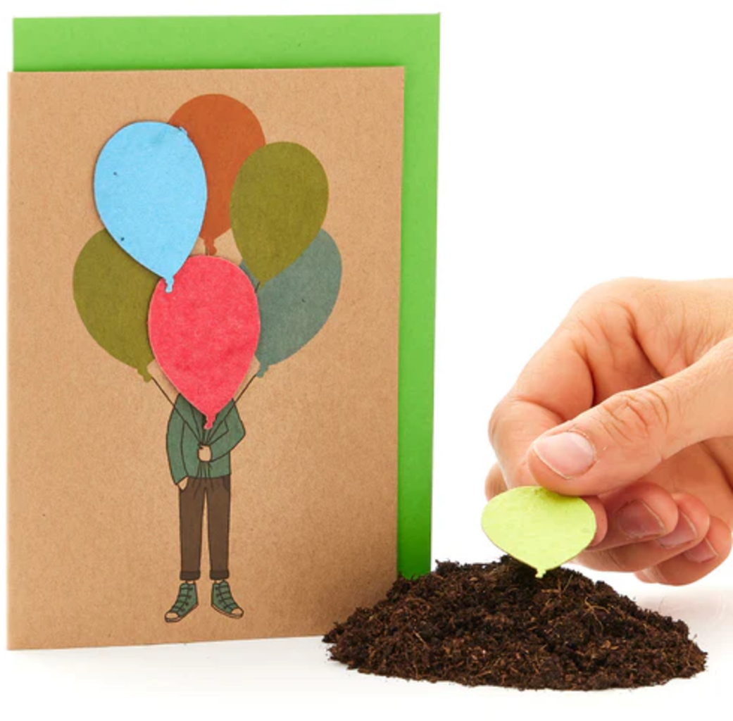 Mooie wensen in de vorm van kleurrijke ballonnen versieren deze geweldige kaart. Drie van de ballonnen bevatten ook een mix van prachtige wilde bloemen die wachten om gezaaid te worden. Dit betekent dat de kaart lang plezier zal geven als de bloemen ontkiemen en bloeien!