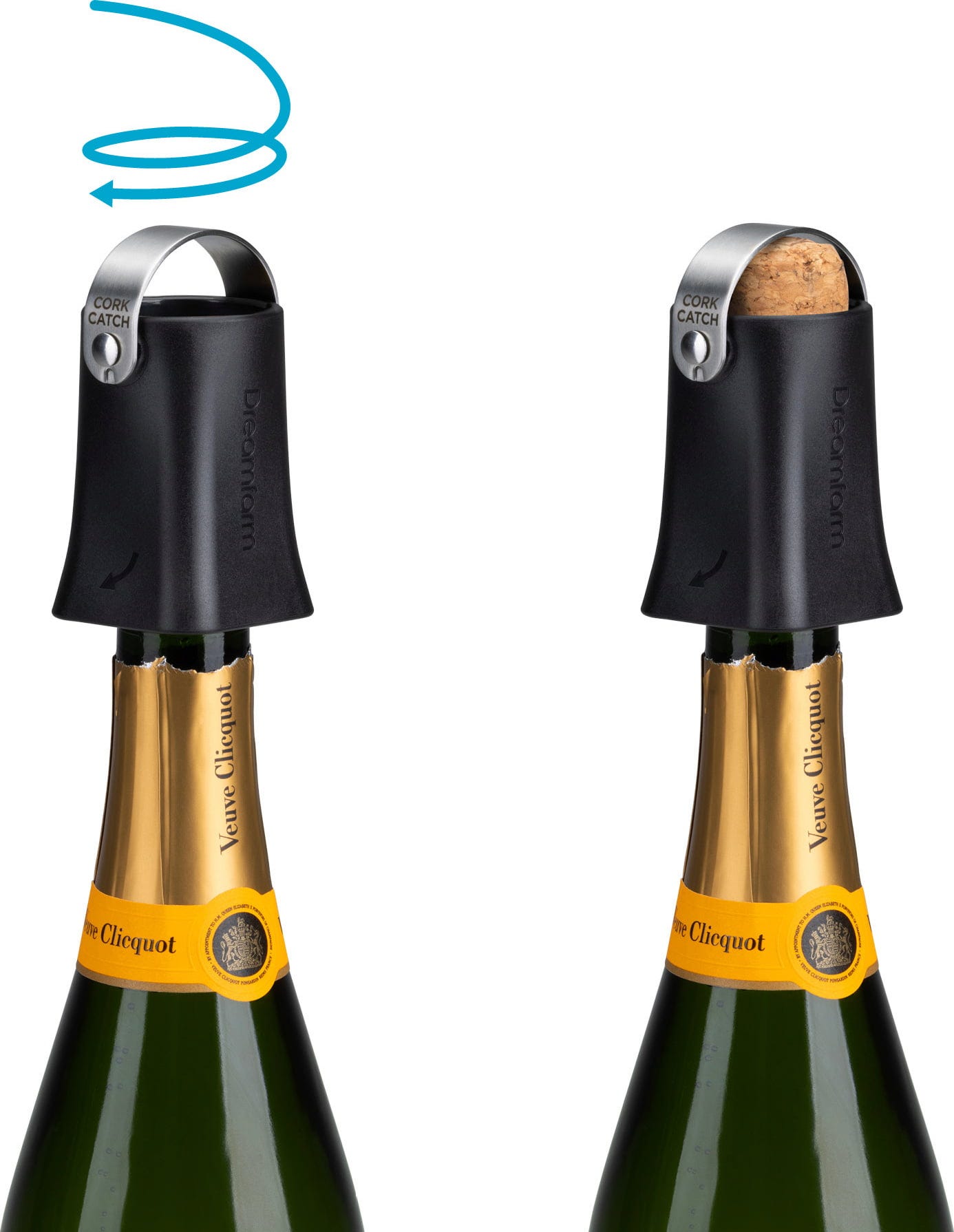 Met de Champop van Dreamfarm hoef je je bij het ontkurken van je champagneflessen geen zorgen meer te maken over oncontroleerbaar rondvliegende kurken of overschuimende dranken! Dit slimme gadget plaats je eenvoudig op de flessenhals en draai je lichtjes om de kurk gecontroleerd te verwijderen. Dankzij de geïntegreerde ventilatiesleuven wordt de druk zachtjes afgelaten en wordt de snelheid van de kurk zodanig verminderd dat hij veilig in de behuizing wordt opgevangen – dat is de lock-modus.