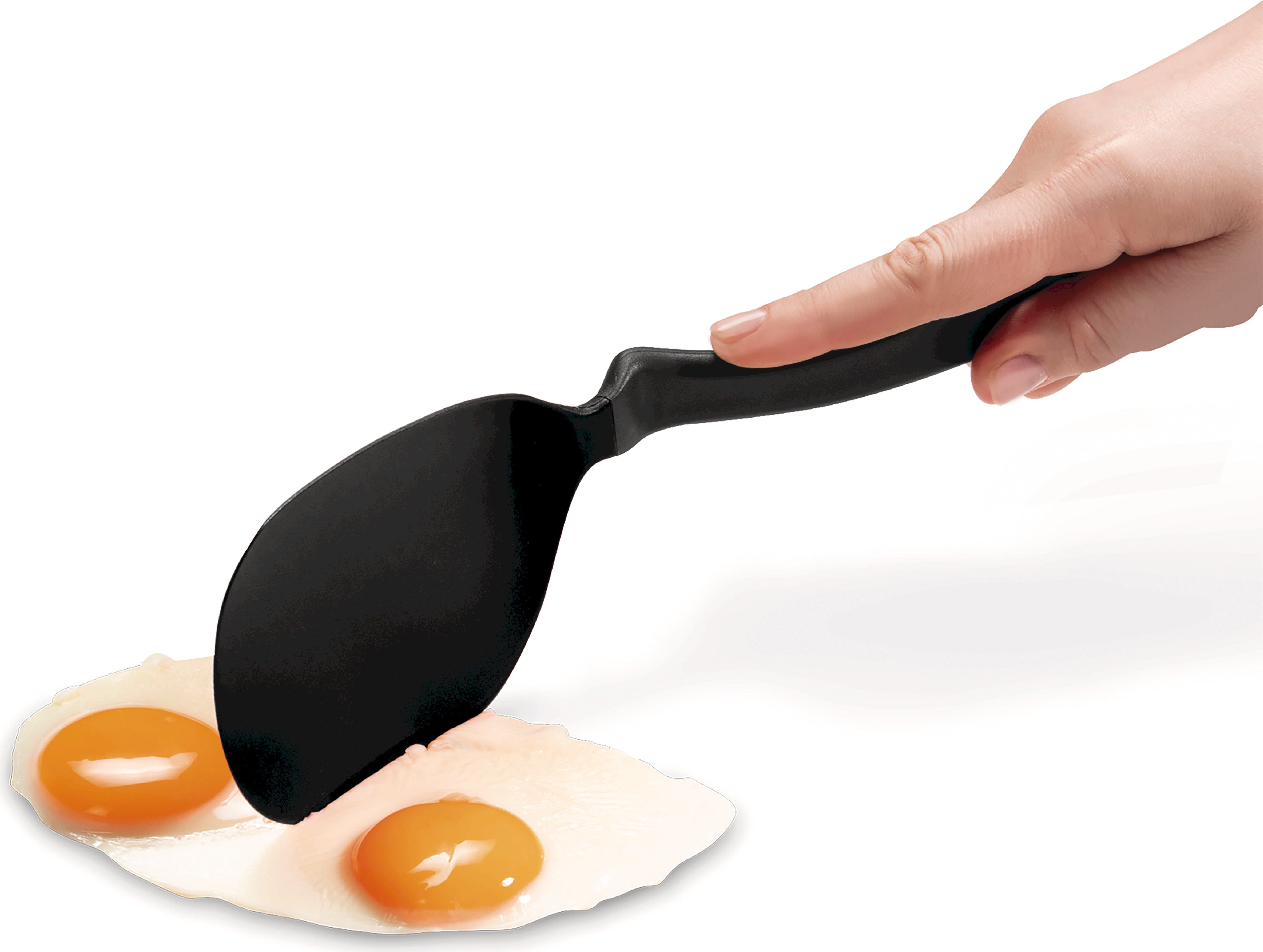 De Spatel Chopula van Dreamfarm is een ingenieuze spatel die dankzij zijn buigzame, grote kop moeiteloos onder elk gerecht glijdt. Het unieke ontwerp maakt het mogelijk om elke hoek in pannen en schalen te bereiken. Dankzij de speciale knik in het handvat blijft de kop bij het neerleggen altijd boven het werkblad zweven, wat zorgt voor maximale hygiëne in de keuken.
