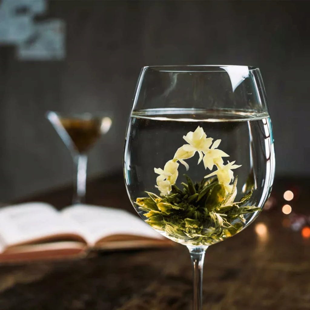 - 1x theebloem "reunion" (groene thee met een strik van jasmijn)
