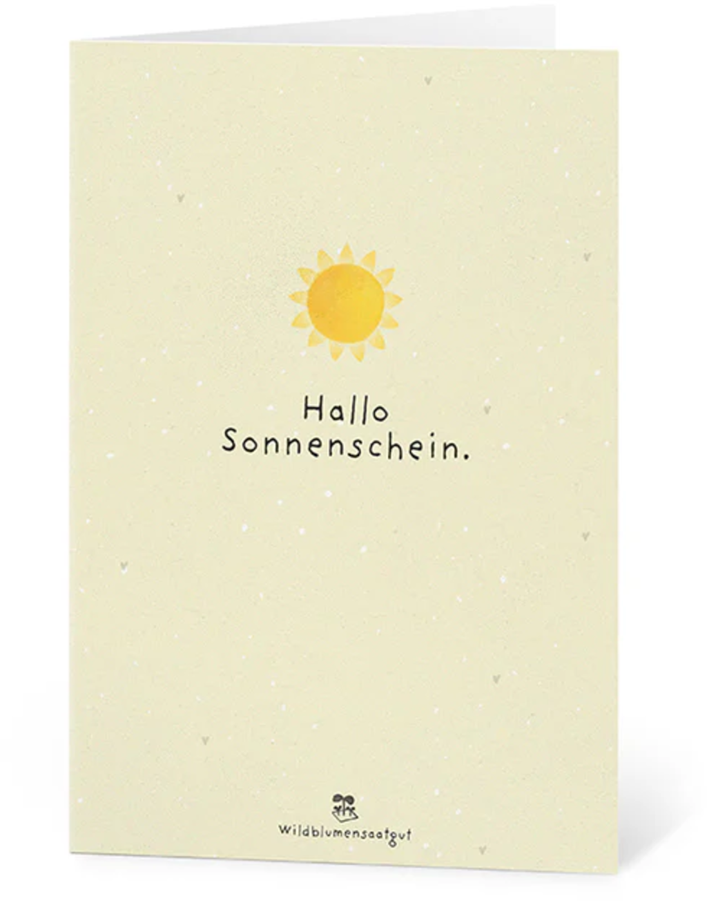 Hallo Sonnenschein! Deze kaart is een vrolijke groet aan iemand die het leven mooier maakt. Voor een goede vriend, een geliefde of gewoon iemand die wel wat zonneschijn kan gebruiken.