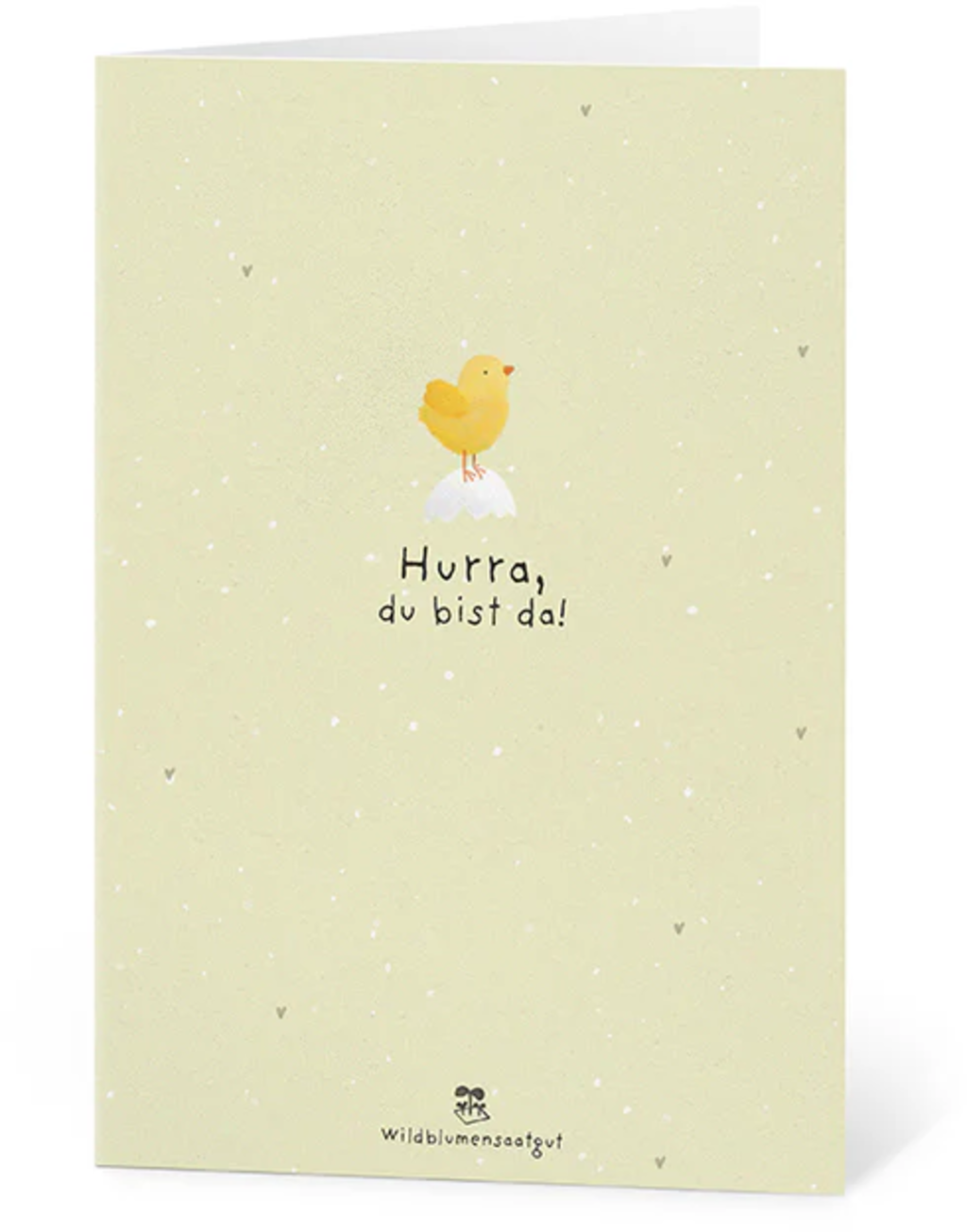 Hurra, du bist da! Deze kaart is een liefdevol welkom voor een nieuw leven. Of het nu een jongen of een meisje is - het zegt: Het is geweldig dat je er bent. Moge de reis van je kleintje kleurrijk, gemakkelijk en vol geluksmomenten zijn.