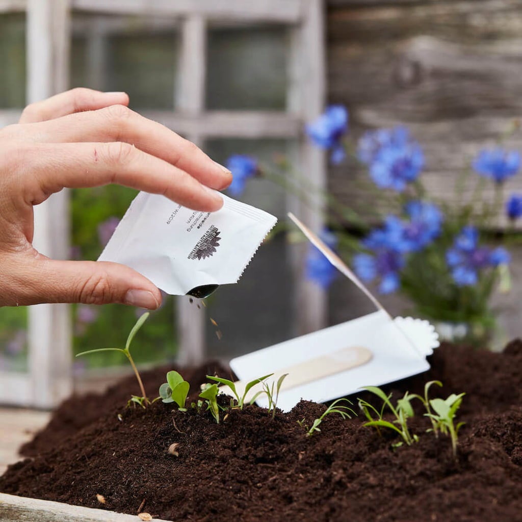 Deze zadenmix bevat 20 verschillende kruiden- en wilde bloemenzaden, die je het beste vanaf april samen met wat zand of zaagsel in losgemaakte grond kunt zaaien. Druk de zaden lichtjes aan en hark ze dan een beetje in. Houd de grond de weken erna goed vochtig en je kunt al snel genieten van prachtige wilde bloemen.