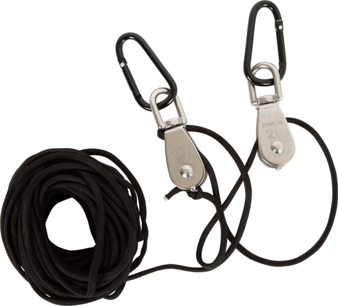 - Twee katrollen zorgen voor moeiteloos transport van ladingen