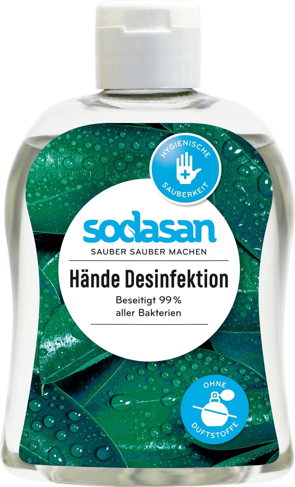 Het ontsmettingsmiddel van Sodasan bevat meer dan 70% biologische alcohol en biologische glycerine. De productie is CO2-neutraal.
