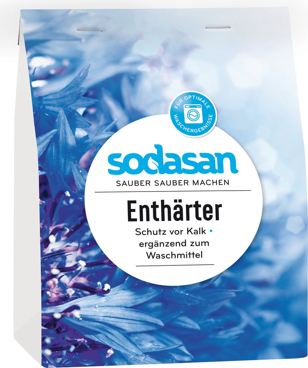 De SODASAN waterontharder bestaat uit carbonaten en silicaten. Deze zijn in staat om de calcium- en magnesiumionen die verantwoordelijk zijn voor de hardheid van water te binden en zo zacht water te produceren. Het wordt gebruikt als aanvulling op SODASAN wasmiddelen in poedervorm voor hard water.