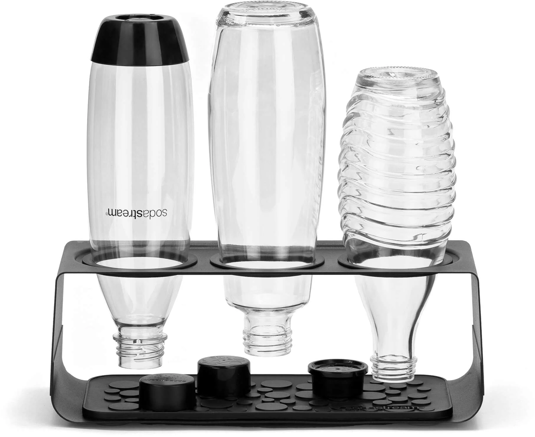 Stijlvol afdruiprek voor alle soorten flessen van Sodastram. Met 3 openingen en een doorlopende bodem kunnen 3 flessen inclusief schroefdoppen worden gedroogd.