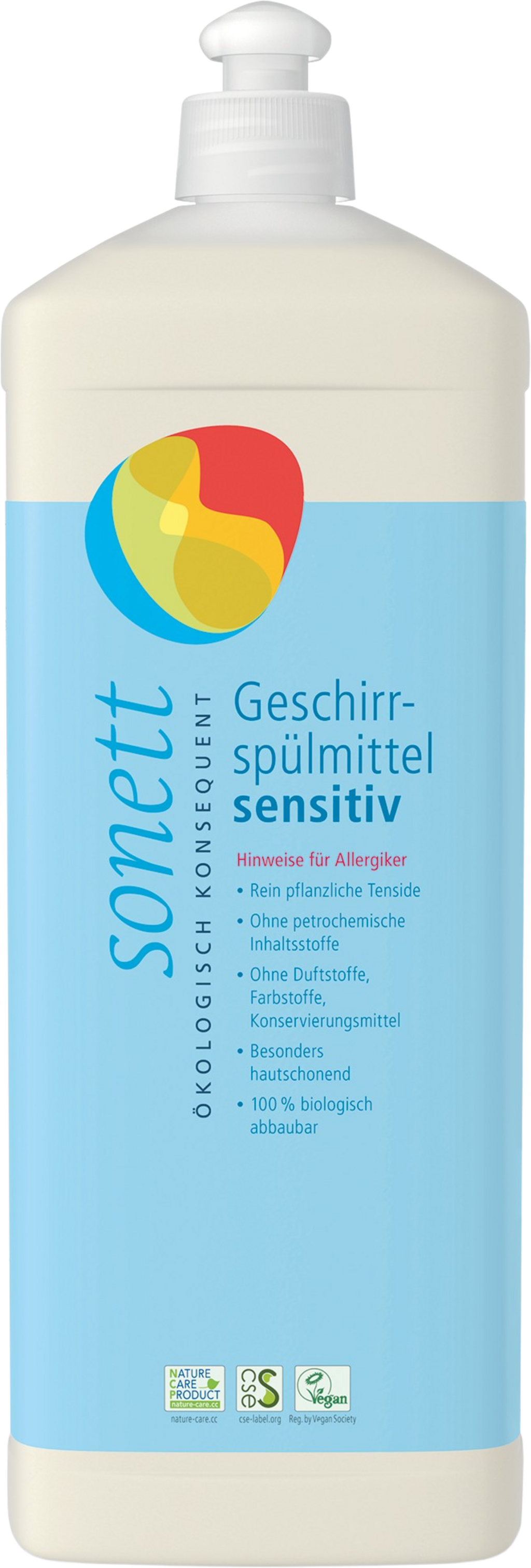 Met behulp van zuiver plantaardige oppervlakteactieve stoffen en zonder petrochemische ingrediënten zorgt dit huidvriendelijke afwasmiddel van Sonett voor een sprankelend schone vaat!