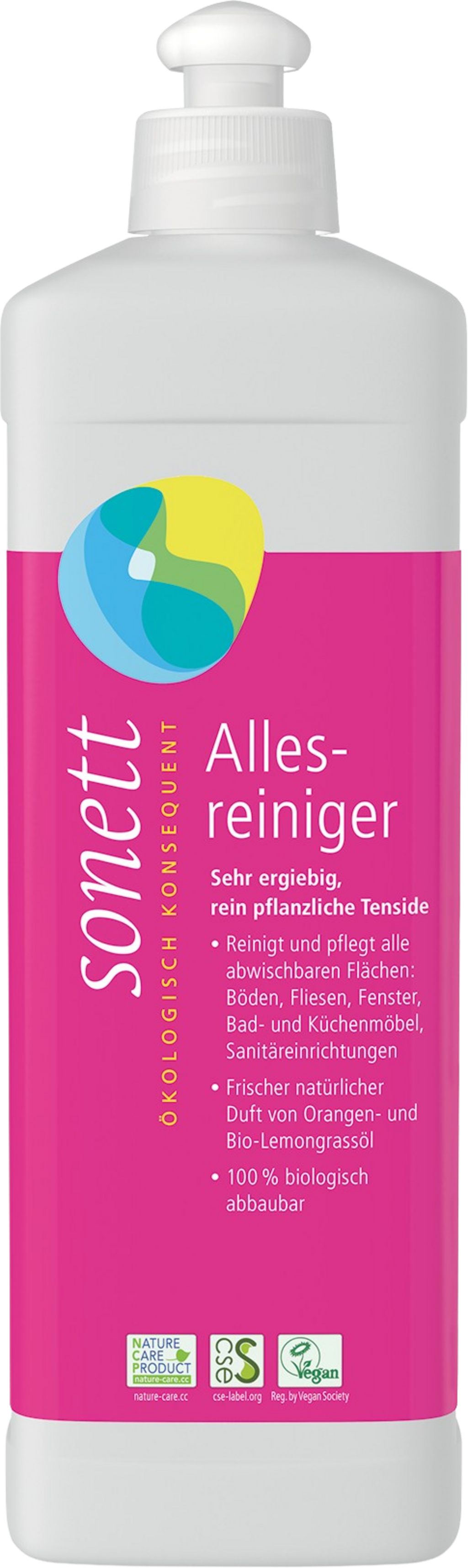 De wasactieve stoffen van de allesreiniger hebben zeer sterke vet- en vuiloplossende eigenschappen. De combinatie met sinaasappel- en citroengrasolie maakt de reiniger huidvriendelijk en geeft hem een natuurlijk frisse geur.