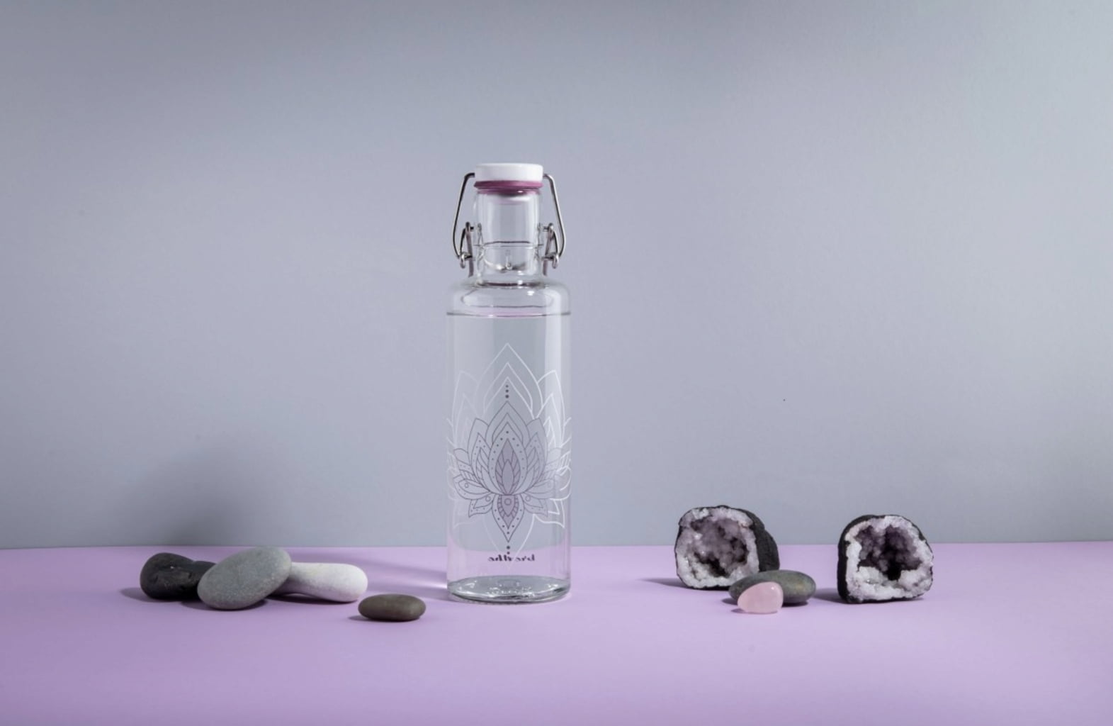 Met deze glazen drinkfles is puur drinkplezier gegarandeerd. De print van de lotusbloem zorgt ook voor spiritualiteit, puurheid en verlichting. Voor rustmomenten tussendoor.