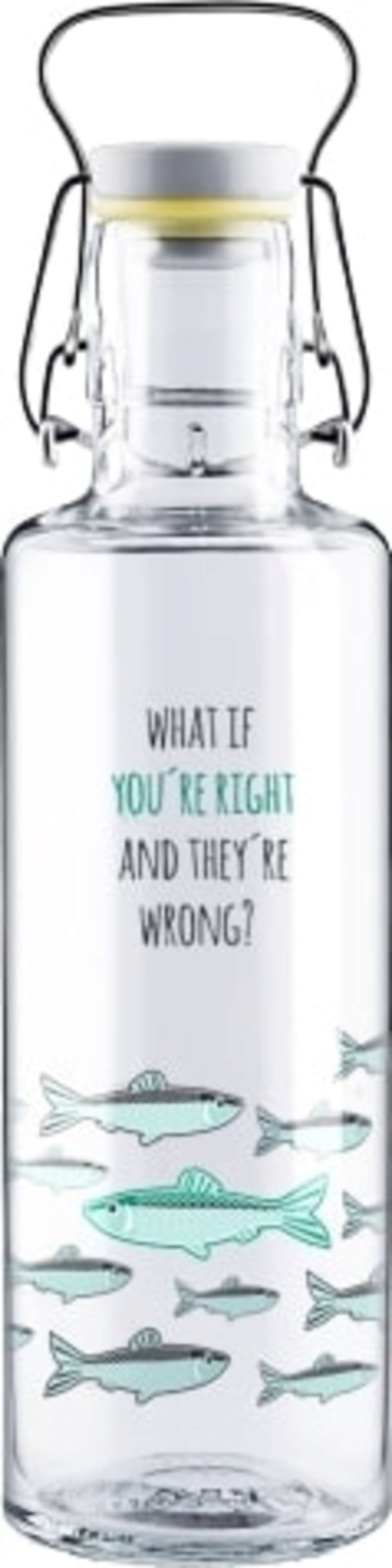Met deze glazen fles is plasticvrij drinkplezier gegarandeerd. Hoogwaardige materialen beschermen het milieu, terwijl het geweldige ontwerp zwemmen tegen de stroom in stimuleert en frisse ideeën bevordert. Ideaal niet alleen voor individualisten.