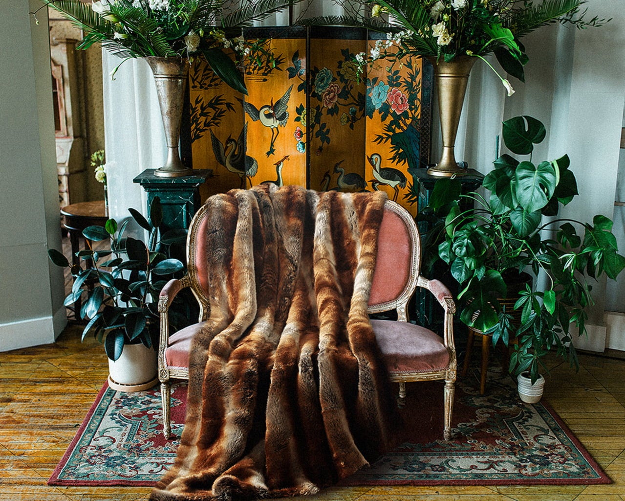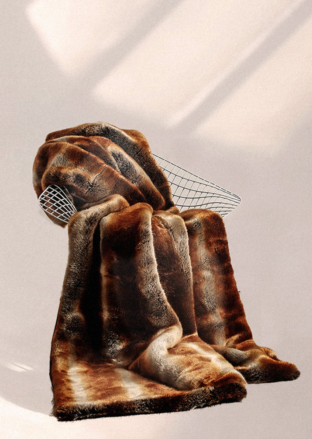 Het royale formaat en luxe gewicht van de deken nodigen uit om er lekker in weg te kruipen, en het geweven imitatiebont verschilt nauwelijks van echt bont qua kleur, pool en gevoel. De deken is een elegante accessoire voor elke woon- of slaapkamer en is ideaal voor koelere dagen.