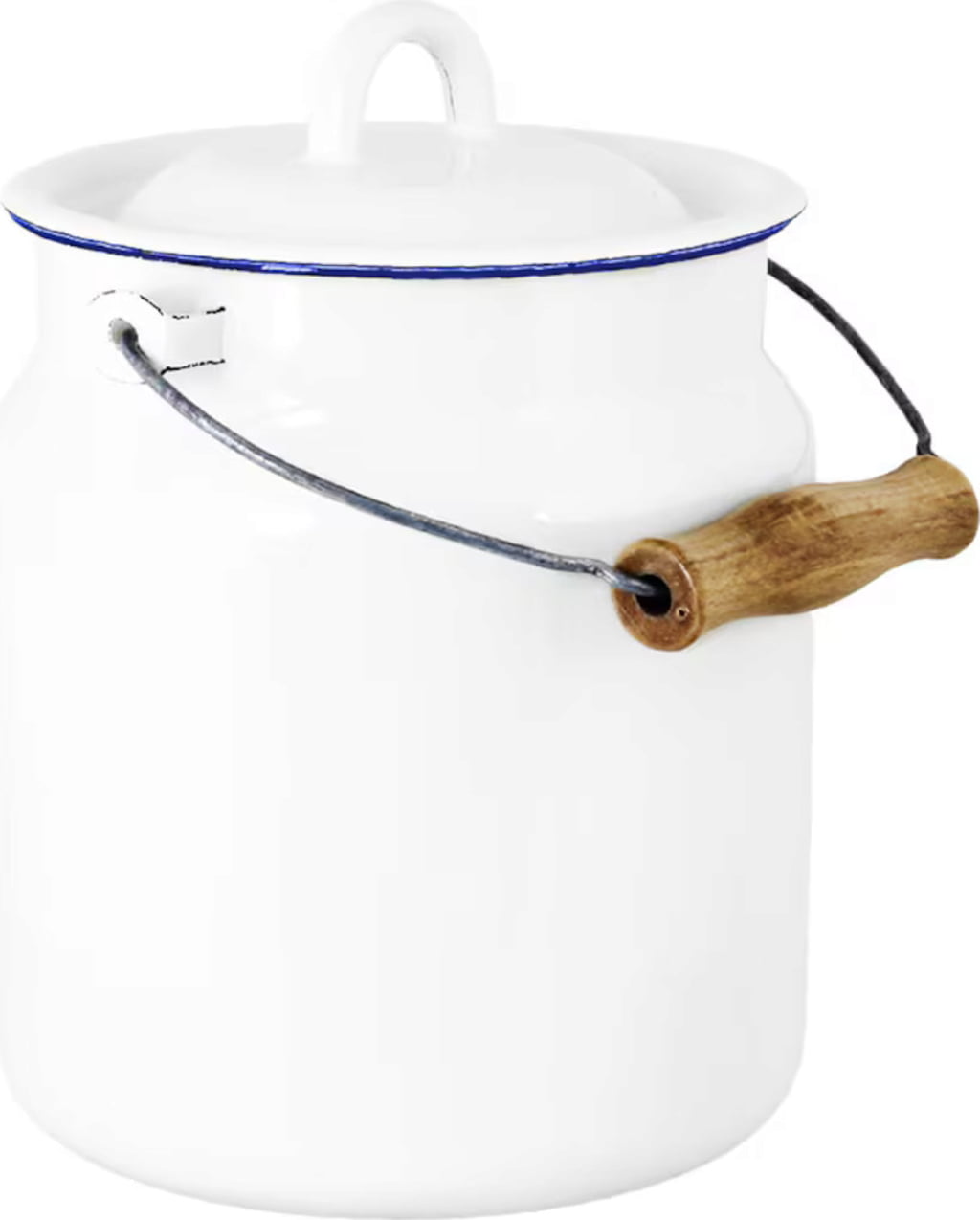 Generaties voor ons hebben hem altijd zo gehanteerd - het is ideaal om tot 3 liter verse melk bij de boer te halen. Maar ook soepen of bessen kunnen prachtig worden vervoerd. Daarvoor zorgt het metalen handvat met de comfortabele houten greep. Om morsen te voorkomen, doe je gewoon het deksel erop