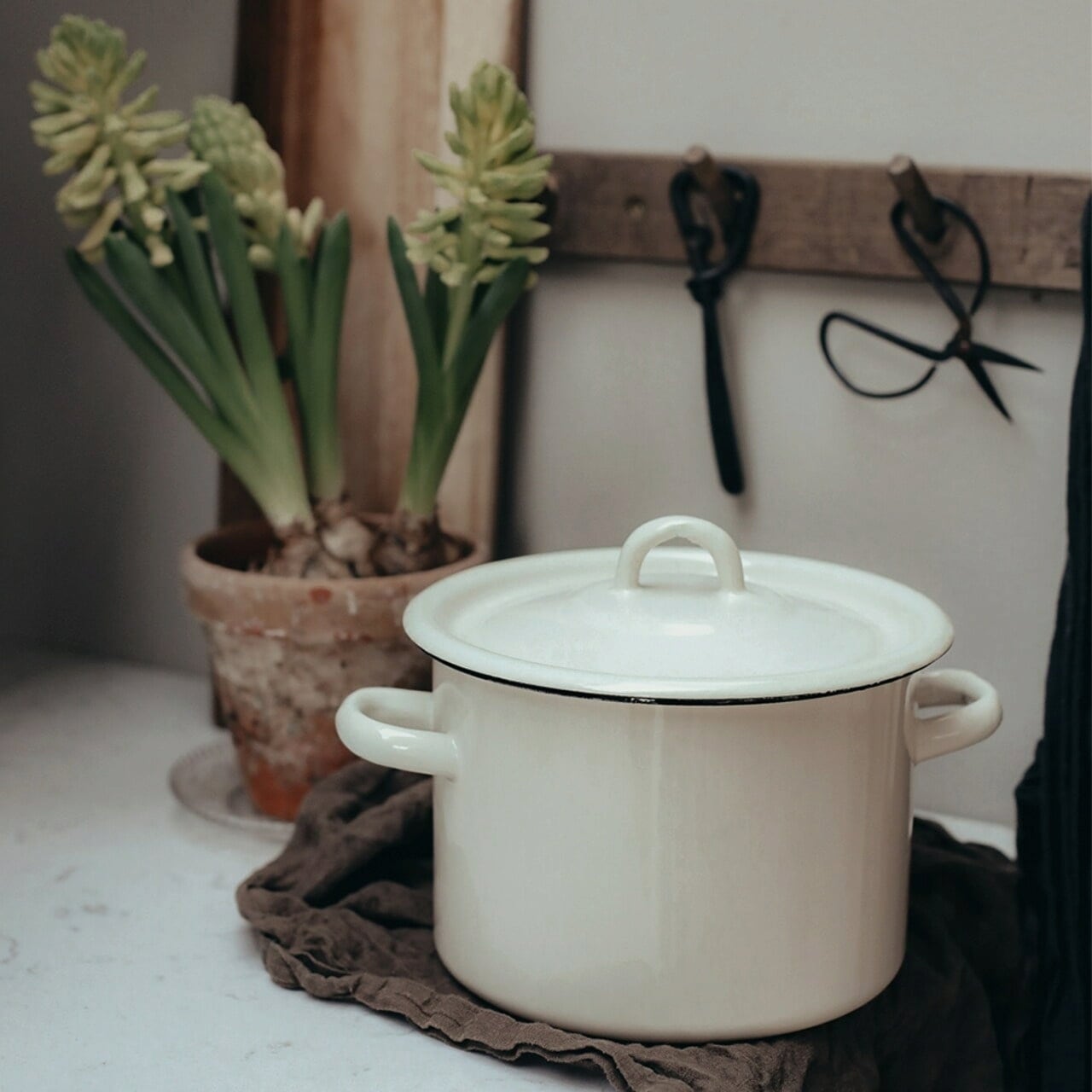 De rustieke emaille pan, voor een inhoud tot 3 liter, is ideaal voor eenpansgerechten, crèmesoepen of heerlijke stoofschotels. Het robuuste materiaal garandeert een gelijkmatige warmteverdeling en een snelle opwarmtijd. Koken met een deksel gaat nog sneller - dat bespaart tijd en energie!