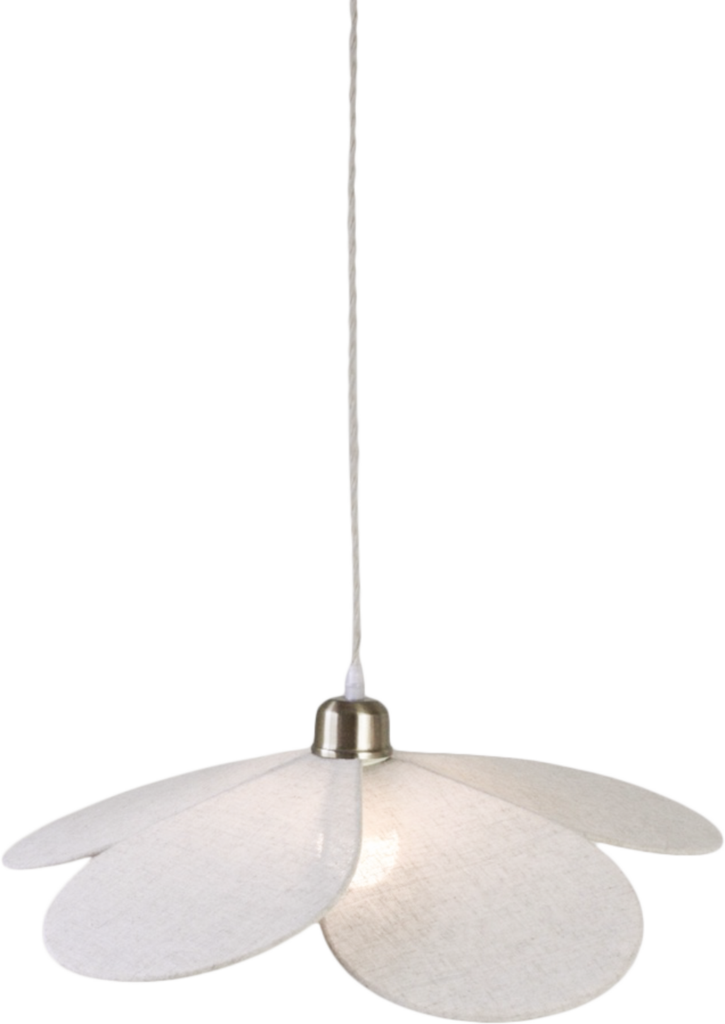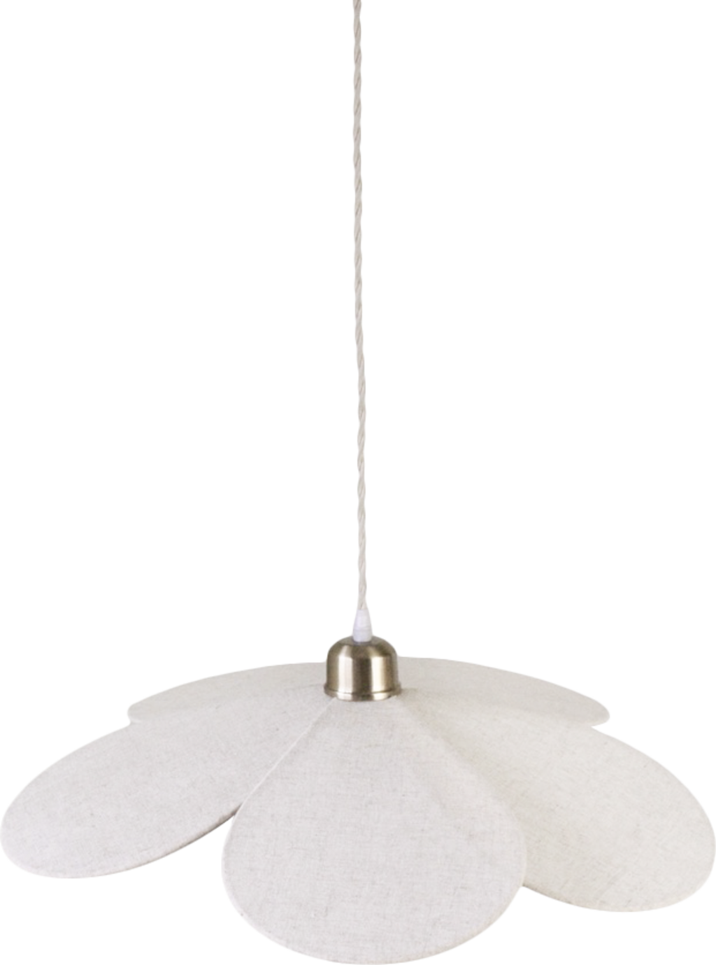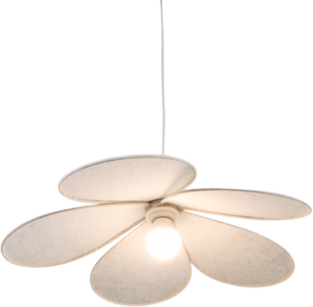 Deze lamp zweeft als een delicate bloem aan het plafond. De linnen bloemblaadjes zorgen voor zacht licht en een aangenaam ontspannen sfeer.