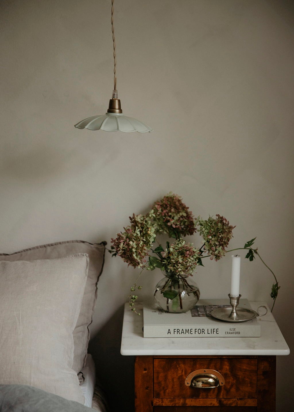 De basis met messing afwerking vormt een mooi contrast met de gelakte metalen lampenkap. Het snoer is van stof en heeft een optimale lengte van 150 cm.