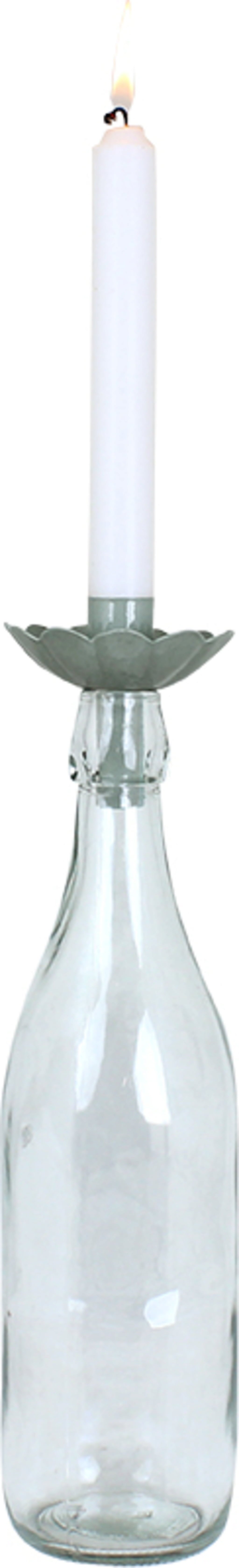 Deze innovatieve kaarsenhouder wordt eenvoudig op lege flessen geplaatst en laat ruimte voor creatieve ontwerpideeën. De bloemvormige schaal is met de hand beschilderd en voorkomt op betrouwbare wijze schade door heet kaarsvet.