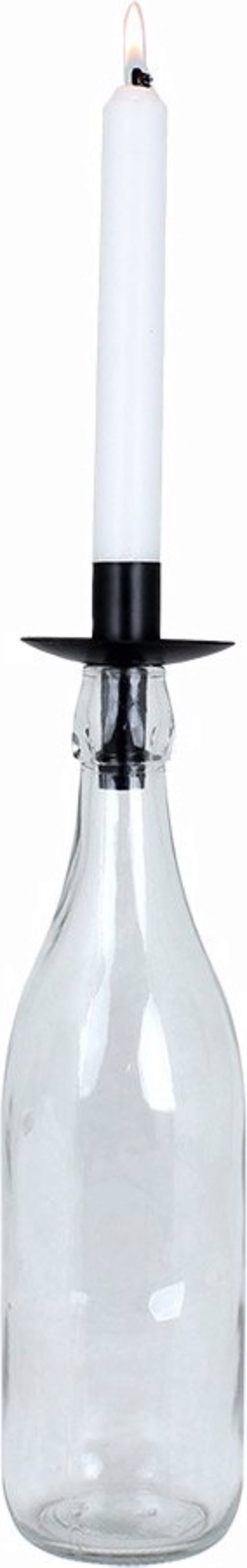 Een kandelaar waarvan de houder naar eigen inzicht kan worden vormgegeven - afhankelijk van welke fles wordt gebruikt en of deze gevuld of versierd is.