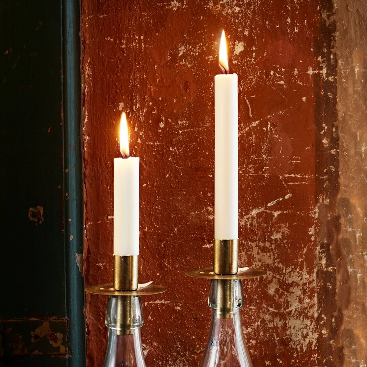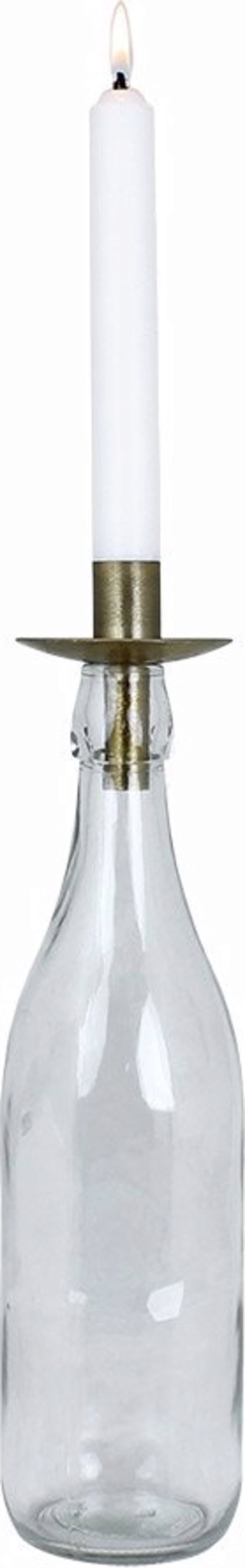 Een kandelaar waarvan de houder naar eigen inzicht kan worden vormgegeven - afhankelijk van welke fles wordt gebruikt en of deze gevuld of versierd is.