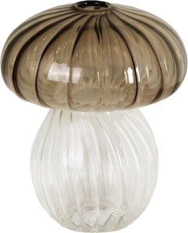 Deze elegante vaas in bruin maakt indruk met zijn speelse paddenstoelvorm en combineert stijlvol design met een praktische functie. Het is het perfecte decoratieve accent voor planken, vensterbanken of tafels en past moeiteloos bij verschillende interieurstijlen.