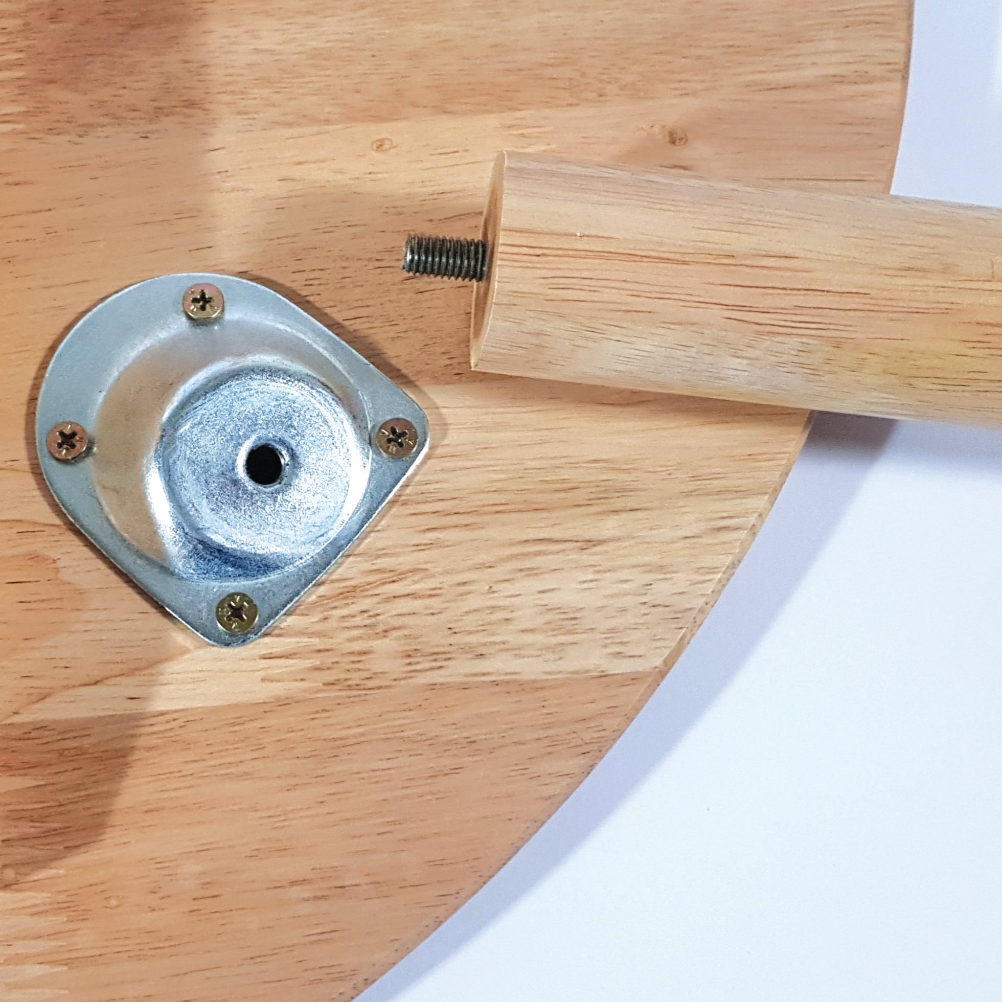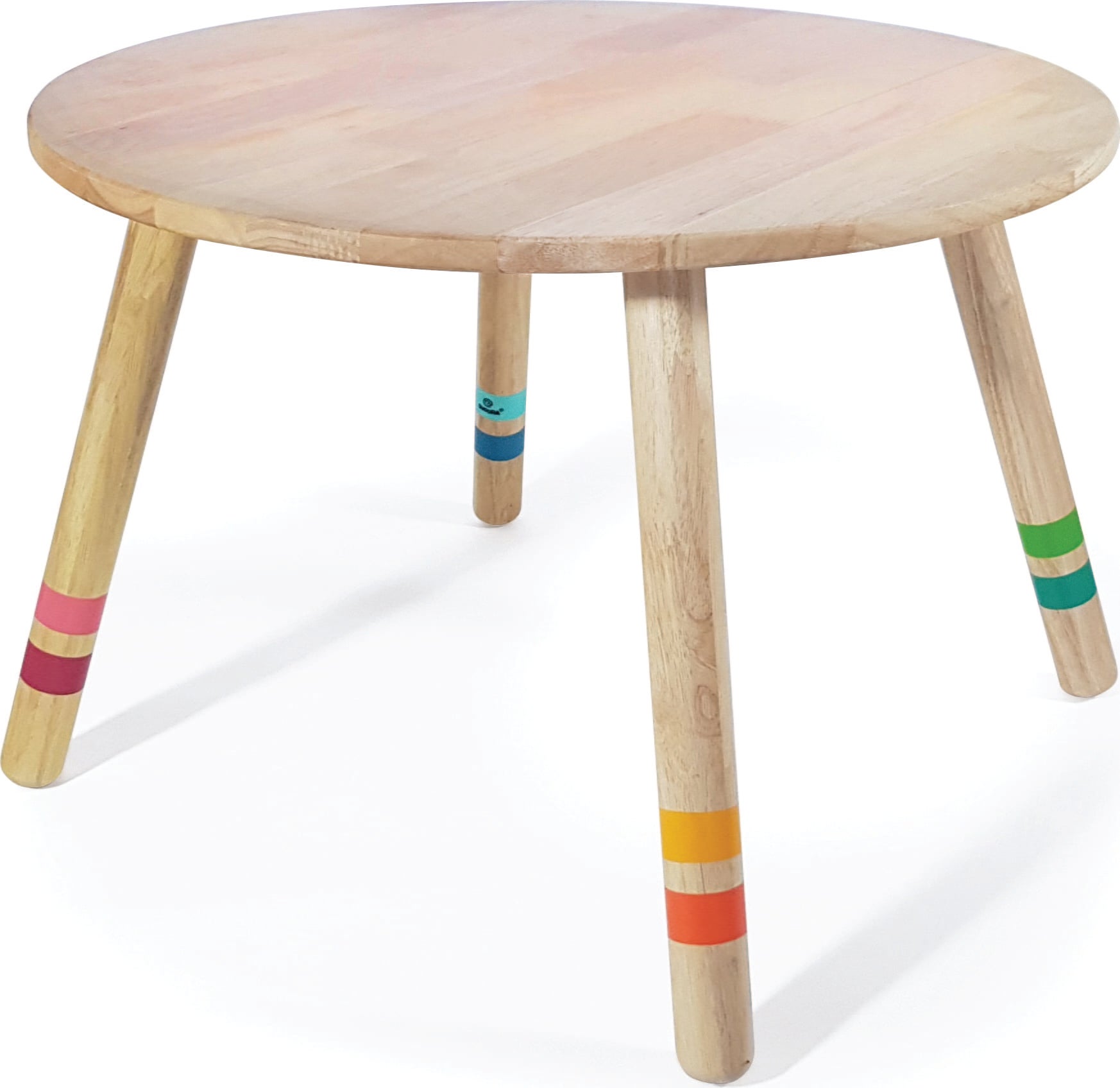 Een stevige ronde tafel van massief rubberwood voor de kinderkamer. Het natuurlijke ontwerp past in elk interieur. Felle kleuren op de tafelpoten geven het geheel net dat beetje extra. Het is heel eenvoudig om de poten aan het tafelblad te bevestigen.