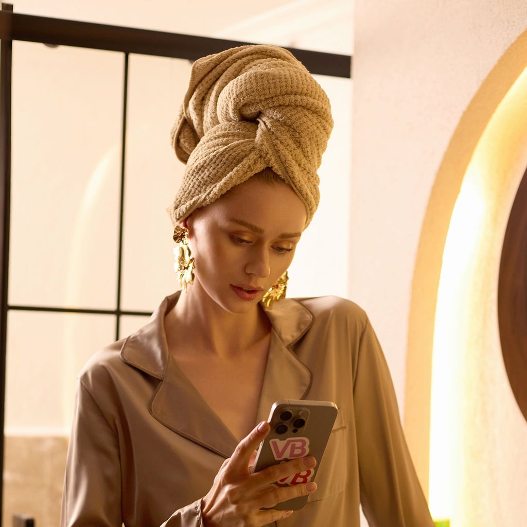 De Hair Towel van Veganboost is gemaakt van microvezels, die je haar snel en efficiënt droogt. De mix van polyester en polyamide maakt de handdoek bijzonder zacht en minimaliseert wrijving, waardoor je haar beschermd wordt tegen beschadiging. Dankzij de lus aan de achterkant van het hoofd kan de handdoek gemakkelijk in een tulband gewikkeld en bevestigd worden.