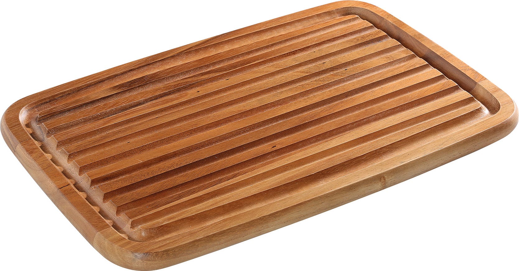 De acaciahouten broodsnijplank van Zassenhaus zorgt voor mooie sneetjes brood en minder rommel op het werkblad. De slimme kruimelgroeven vangen de kleine stukjes brood op, terwijl het robuuste hout duurzaam blijft, zelfs bij veelvuldig gebruik. Ideaal voor baguettes, broden of ciabatta.
